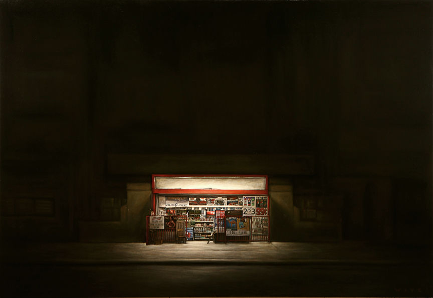 Dan Witz (b. 1957) in Chicago, Illinois but currently residing in Brooklyn, New York attended Rhode Island School of Design from 1975-77 and came to New York in 1978 to attend Cooper Union, receiving a BFA in 1980. In 1982, he received a grant from the National Endowment for the Arts. In 1992 and 2000, he received fellowships from the New York Foundation for the Arts followed by a fellowship from the Public Art Fund.